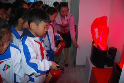 洛陽路第一小學(xué)的學(xué)生爭相體驗(yàn)119火災(zāi)模擬系統(tǒng)