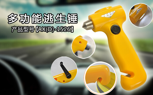 以前轎車玻璃升降都是手搖式的,所以很少車內會配有,通常只出現(xiàn)在客車上。然而,隨著電子升降替代機械升降以后,雨天涉水行車涉水熄火后車窗是打不開的,這點要吸取經(jīng)驗教訓。隨車配備帶有割安全帶功能刀子的多功能逃生錘必不可少。