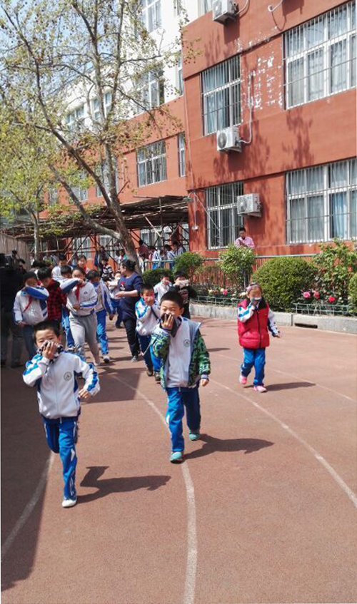 除了傳統(tǒng)的理論知識(shí)外,培訓(xùn)中心應(yīng)急專業(yè)講師為學(xué)生們量身定制校園防踩踏、校園火災(zāi)疏散逃生演習(xí)。在逃生的過程中,除了及時(shí)、正確的撥打119報(bào)警電話外,學(xué)生們忙而不亂、活用理論知識(shí),借助濕毛巾、消防過濾式自救呼吸器、滅火毯等自救工具緊張而有序地進(jìn)行“逃生”,用時(shí)不到3分鐘,600余名師生安全“逃生”到空曠的地方。
