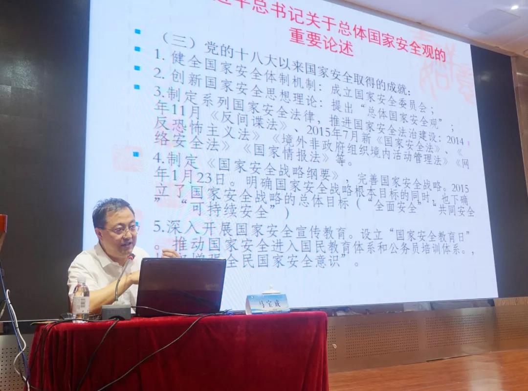 山東科技大學(xué)黨委書記羅公利為中央黨校(國(guó)家行政學(xué)院)應(yīng)急管理培訓(xùn)中心(中歐應(yīng)急管理學(xué)院)主任(院長(zhǎng))/中國(guó)應(yīng)急管理學(xué)會(huì)副會(huì)長(zhǎng)馬寶成頒發(fā)聘任證書。簽約儀式后,馬寶成教授以《堅(jiān)持總體國(guó)家安全觀全面推進(jìn)新時(shí)代應(yīng)急管理體系介紹》為題作安全應(yīng)急管理報(bào)告