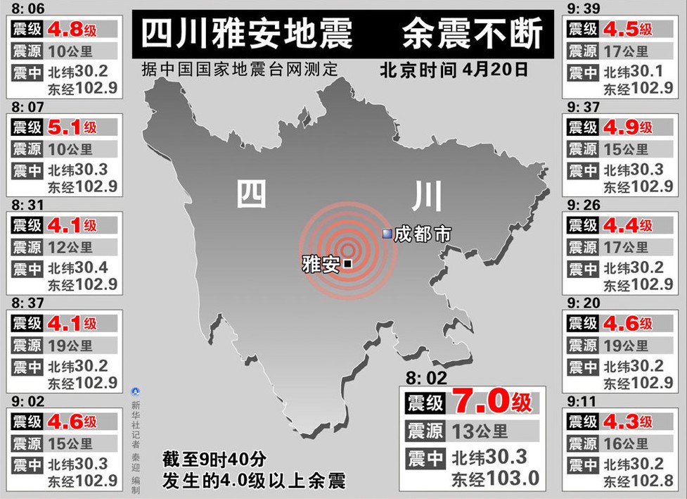 此外,經(jīng)過國家電網(wǎng)德陽電業(yè)局15名電力搶險人員2小時的搶修,蘆山縣黎明水廠13時恢復(fù)供水。該水廠檢驗(yàn)員吳江說,這是震后首個恢復(fù)的水廠,可滿足城區(qū)10余萬人的應(yīng)急用水需求。
