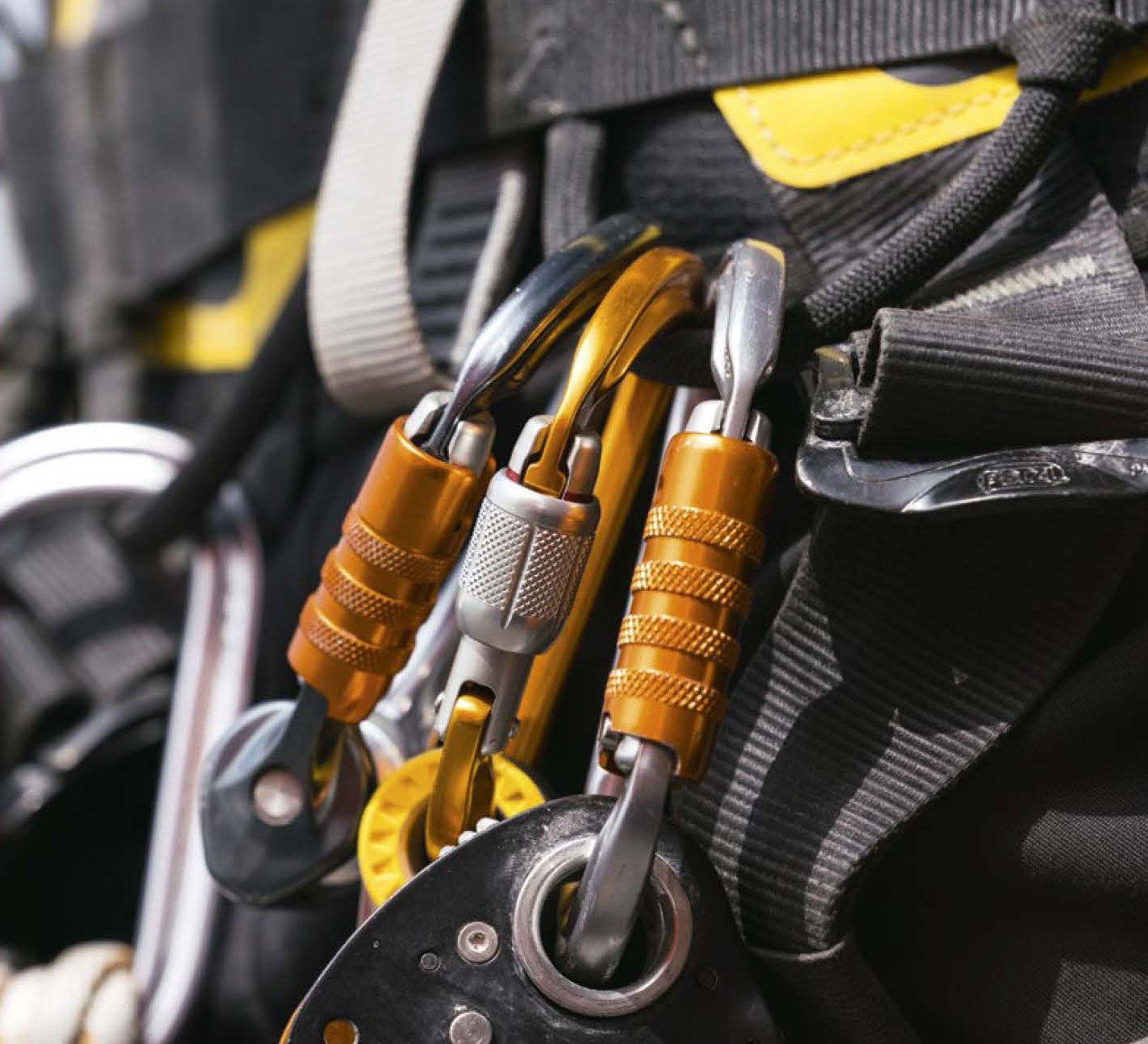 多向受力半圓型鎖扣用于連接安全帶和胸式上升器。有兩種上鎖系統(tǒng):自動(dòng)鎖門和手動(dòng)鎖門。