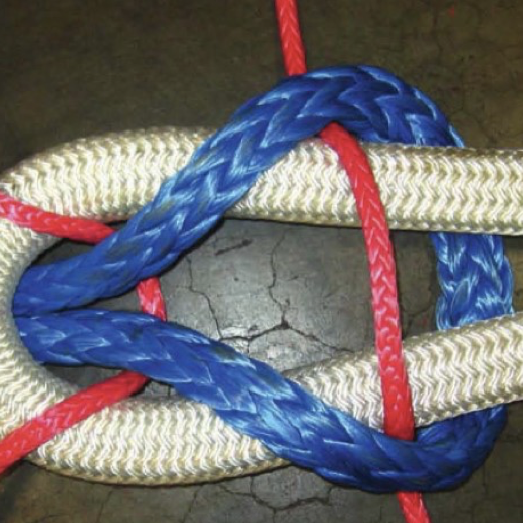 纜繩尾可以使用雙合結(jié)直接連接到高模量合成纖維纜繩上。雙合結(jié)是一種不使用連接裝置而將兩根纖維繩連接起來(lái)的方法。使用后的雙合結(jié)可能會(huì)變得非常緊,建議在雙合結(jié)中加入一段繩頭,有助于將纜繩尾和主纜分開,以便進(jìn)行更換或檢查。大多數(shù)繩頭是由直徑較小的傳統(tǒng)纖維繩做的。