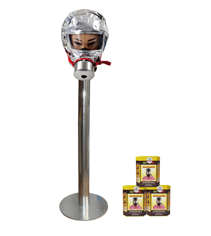 過濾式消防自救呼吸器佩戴演練裝置功能介紹: 裝置用于呼吸面具的佩戴演示與實際操作練習,通過實際動手可以使培訓者掌握過濾式消防自救呼吸器使用技能。
