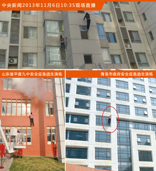 4、不要抓上升的緩降繩索,而是手抓安全帶面朝墻壁緩降著落,該緩降器會勻速安全將人員送往地面。