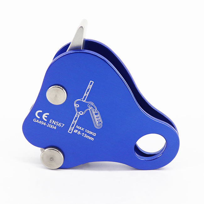單向抓繩器,材質(zhì)7075航空鋁,適用繩索直徑8-13mm,尺寸77mm×75mm×25mm,重量94g。